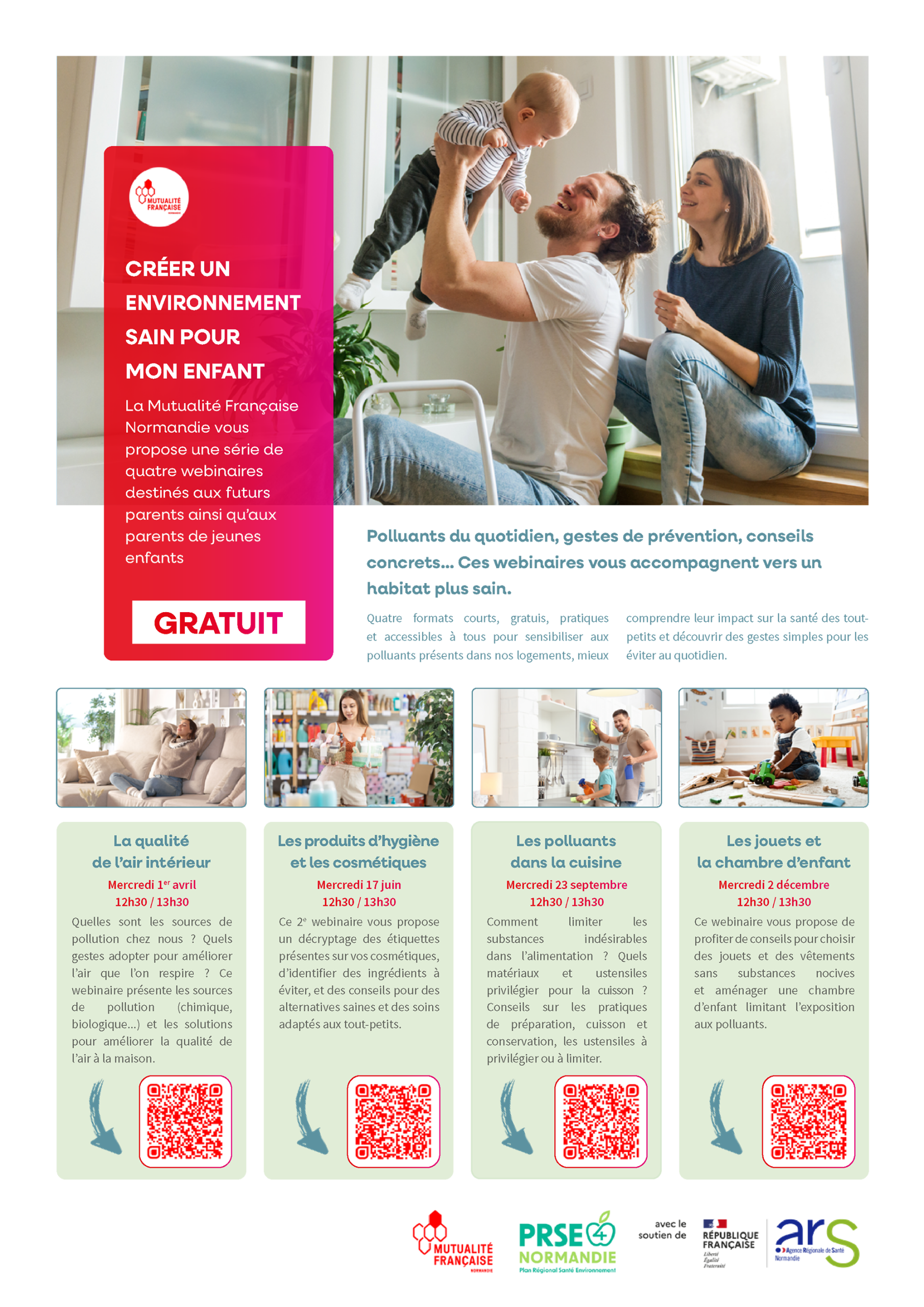 La Mutualité Française Normandie organise une série de quatre webinaires gratuits à destination des futurs parents et des parents de jeunes enfants. Ces ateliers, pratiques et accessibles, visent à sensibiliser aux polluants du quotidien et à proposer des gestes simples pour préserver la santé des tout-petits.