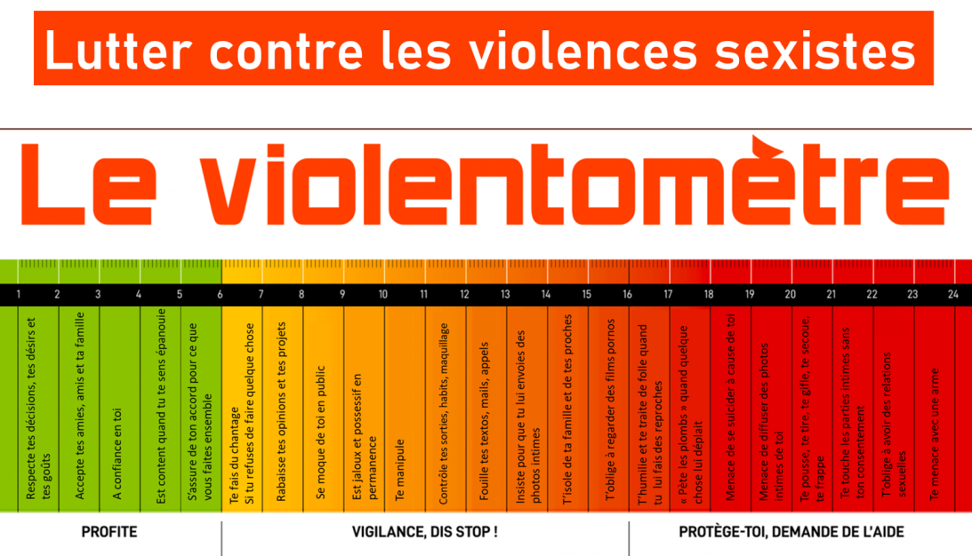 Le violentomètre permet de sensibiliser chacun aux différentes formes de violences, d’aider à identifier les comportements préoccupants et d’encourager les victimes comme les témoins à agir.