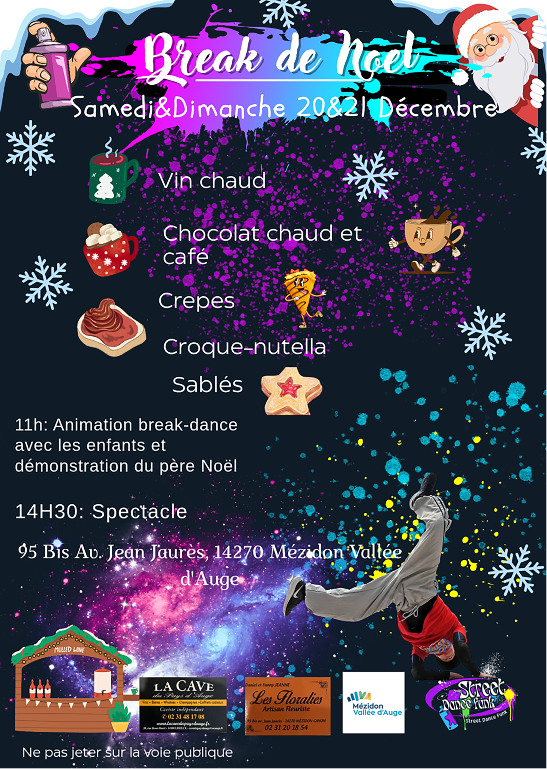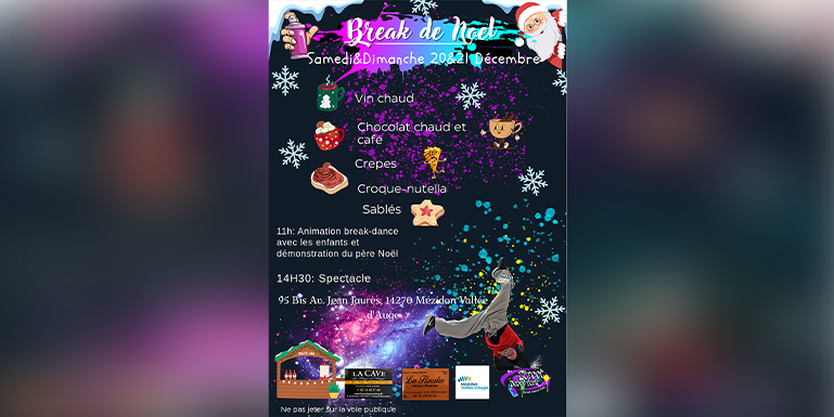 - 11h00 : démonstration de break-dance et présence du Père Noël.